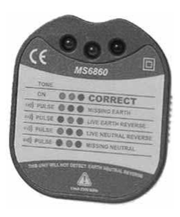 Рис. 1.11. Тестер сетевой розетки - Различные химические препараты используются для протирки контактов, набор тампонов — для протирки контактов, а баллончик со сжатым газом — для удаления пыли в труднодоступных местах. Для выдувания пыли из компьютера обычно используется фреон или углекислый газ. Однако нужно помнить, что при интенсивном выдувании на сопле образуется статический заряд, и необходимо принять меры к его устранению. Кроме того, фреон огнеопасен.